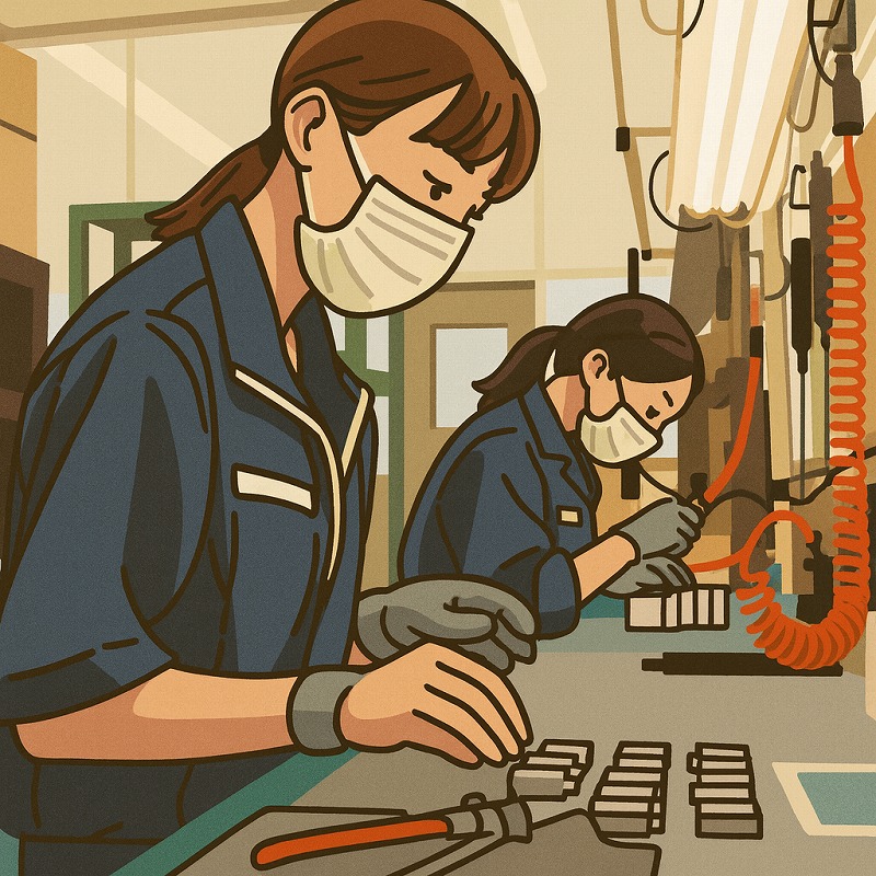 事業内容:バリ取り仕上げ部門の構内請負・手作業工程代行・組立請負